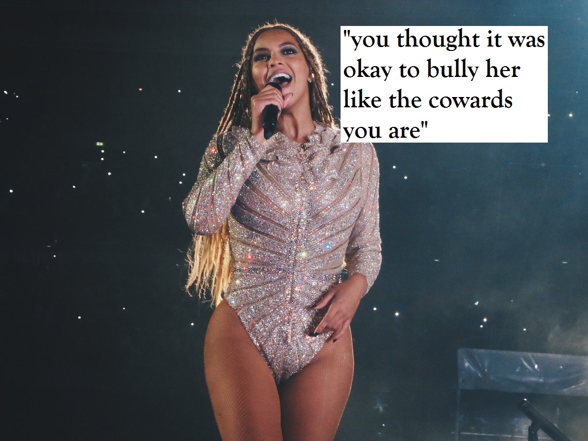 “But the sacrifice to our faces, our feet and our entire bodies is something we welcome because we bring beautiful humans into the world who will one day combat your hate and negativity. I stood silent during Beyoncé’s first pregnancy when you thought it was okay to bully her like the cowards you are, when you accused her of never being pregnant, but I simply cannot this time.”